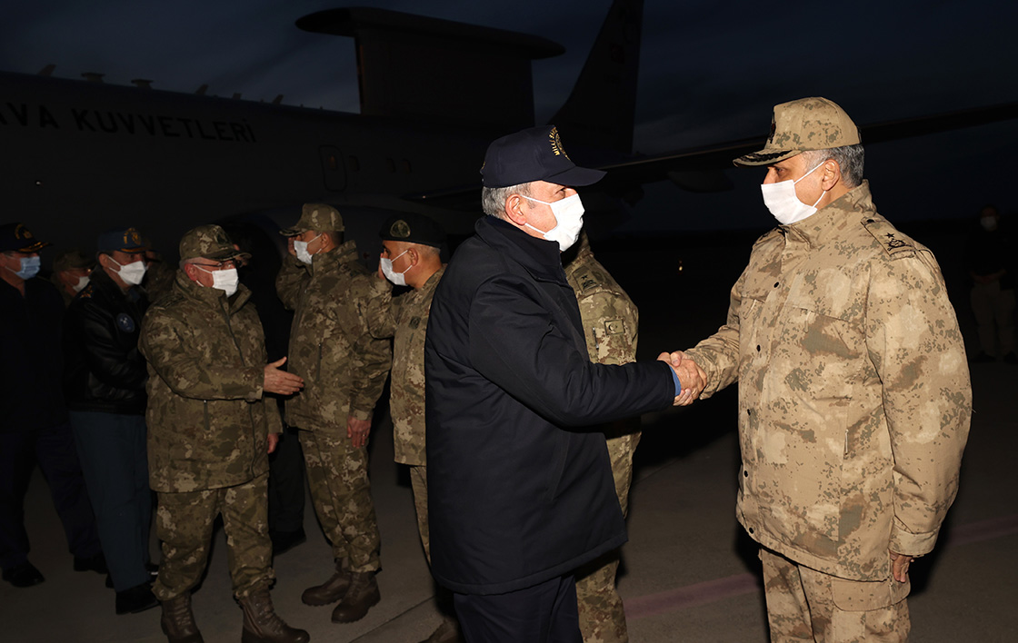 Sahadaki son duruma ilişkin bilgi alan, talimat veren Akar ve TSK komuta kademesinin yılın son gününde sınır hattına ziyareti devam ediyor.