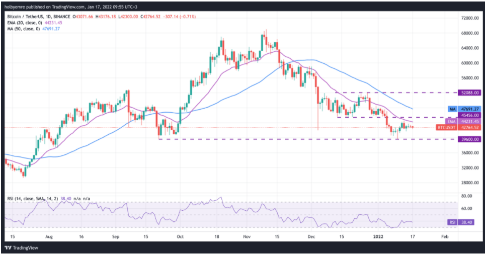 Bu varsayımın aksine, fiyat 20 günlük EMA'nın üzerine çıkamazsa, piyasa duyarlılığının negatif kalacağını ve yatırımcıların rallilerde satış yaptığı ortaya çıkacak. Ayılar daha sonra fiyatı, kritik destek olan 39.600 doların altına indirmek için hamlede bulunacaktır. Başarılı olurlarsa paritedeki düşüş trendi devam edebilir.