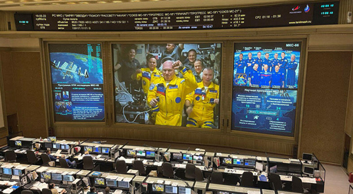 Rusya'nın Ukrayna'ya saldırısı başladıktan sonra ISS'ye gelen ilk Rus kozmonotların, mavi süslemeli sarı üniformalar giydiği görüldü. Üç kozmonot, Rusya'nın Ukrayna'ya saldırısının başlamasının ardından ISS'e giren ilk Rus ekibi oldu.