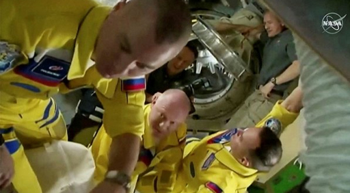 Denis Matveyev, Oleg Artemyev ve Sergey Korsakov içerdeki Alman, Amerikan ve Rus meslektaşları tarafından sıcak bir şekilde karşılandı. Roscosmos Uzay Ajansı ise sarı üniformaların Ukrayna'ya destek için olduğu yorumlarına "Bazen sarı sadece sarıdır" dedi.