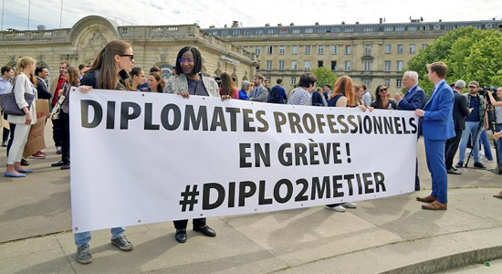 Son günlerde birçok bakanlık yetkilisi, "#diplo2metier/meslekten diplomat" hashtag'i altında bakanlık tarihinde görülmedik bir biçimde, "diplomasi bir meslektir" sloganıyla kamuya açık duruş aldı. Genç diplomatlar Le Monde gazetesinde bir makale yayınlarken, emekli diplomatlar da meslektaşlarına yoğun destek verince, Fransız dışişleri koridorlarında greve destek arttı. Macron'un Le Diran'dan boşalan koltuğa, diplomasi koridorlarının yakından tanıdğı tecrübeli bir diplomat olan Catherine Colonna'yı ataması da Dışişleri çalışanlarının öfkesini yatıştırmaya yetmedi.