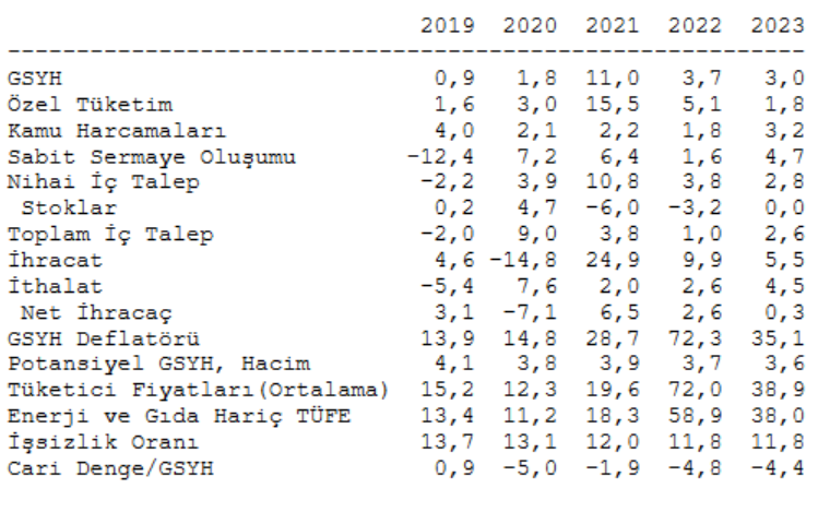 OECD bugün yayınladığı "Ekonomik Görünüm" raporunda, Türkiye için 2022 yılı GSYH büyüme tahmini yüzde 3,3'ten yüzde 3,7'ye çıkarıldı. 2023 yılı için tahmin ise yüzde 3,9'dan yüzde 3,0'e indirildi.