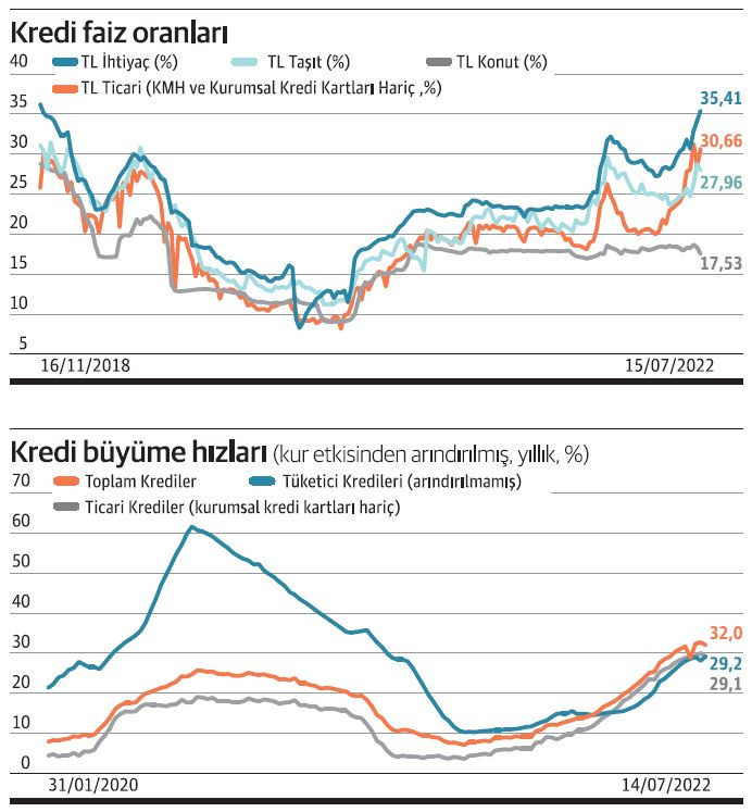 Bankacılık kaynaklarının verdiği bilgiye göre 2018 Ağustos sonrasında hızla tırmanışa geçen kredi ve mevduat faizleri 2019 Temmuz’dan itibaren Merkez Bankası’nın faiz indirimleriyle beraber düşüş trendine girdi. COVID-19 tedbirleri kapsamında başlatılan genişleyici politikalar yeni normale dönüşle beraber kademeli olarak sıkılaştırılmaya başlandı ve TL faizlerde 2020’nin son çeyreğinde başlayarak 2021 Eylül ayına kadar yukarı yönlü bir hareket yaşandı. TCMB, 2021 yılında politika faizini 23 Eylül’de 100, 21 Ekim’de 200, 18 Kasım’da 100 ve 16 Aralık toplantısında 100 baz puan indirerek yüzde 14 seviyesine çekti. 2022 yılında ise değişikliğe gitmedi. TCMB faizleri düşürmesine rağmen ticari kredi faizlerinde zirveler görülmeye devam ediyor. Uzmanlara göre TCMB’nin faiz indirimleri sonrası TL’de yaşanan değer kaybı sonrası açıklanan kur korumalı mevduata yönlendirilen TL nakitle beraber yüzde 14 olan TCMB haftalık repo faizine rağmen kredi faizlerinin yüksek olması TL’deki likidite sıkışıklığının bir göstergesi.