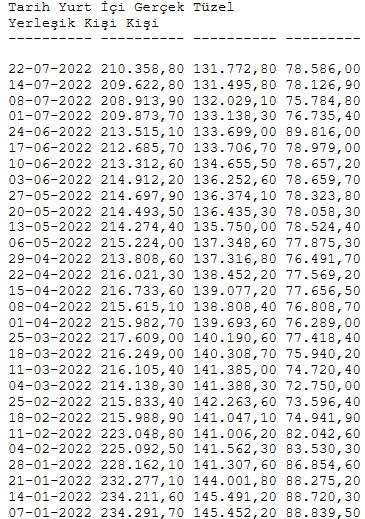 Türkiye Cumhuriyet Merkez Bankası(TCMB) tarafından açıklanan verilere göre, bir önceki hafta 209 milyar 622,80 milyon dolar olan yurt içi yerleşiklerin döviz mevduatı 22 Temmuz ile sona eren haftada 210 milyar 358,80 milyon dolara geldi.