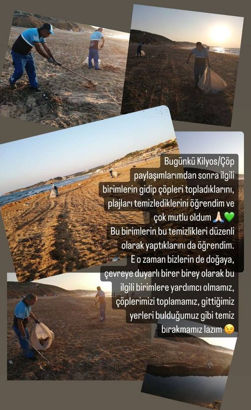 Bügünkü Kilyos çöp paylaşımlarımdan sonra ilgili birimlerin gidip çöpleri topladıklarını, plajları temizlediklerini öğrendim ve çok mutlu oldum. Bu birimlerin bu temizlikleri düzenli olarak yaptıklarını da öğrendim. Ee o zaman bizlerin de doğaya, çevreye duyarlı birer birey olarak bu ilgili birimlere yardımcı olmamız, çöplerimizi toplamamız, gittiğimiz yerleri bulduğumuz gibi temiz bırakmamız lazım.