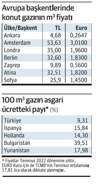 İngiltere yaşayan hane halkı doğal gazın metreküpüne 35 Lira (1,96 Euro) öderken Berlin’de yaşayanlar 32,6 lira (1,83 Euro) ödüyor. Zagrep’te yaşayanlar ise 9,89 lira (0,56 Euro) ile en düşük fiyatı ödeyenlerden. Komşu ülkelerden Yunanistan’ın başkenti Atina’da metreküp başına 32,51 lira (1,82 Euro), Bulgaristan’ın başkentinde ise Sofya 25,9 lira (1,45 Euro) tahsil ediliyor.