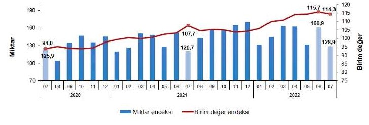 İhracat birim değer ve miktar endeksleri, Temmuz 2022
