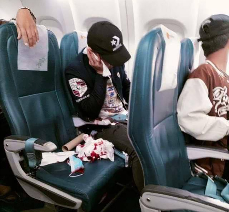 İsmi açıklanmayan yolcunun uçak iner inmez hastaneye kaldırıldığı belirtilirken, kanlar içerisinde uçaktaki hali de görenleri şoke etti.