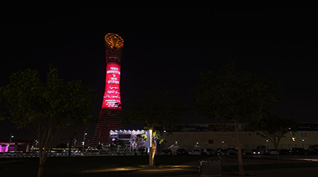 Katar'ın sembol yapılarından Al Jaber Kuleleri, The Torch Tower (Meşale Oteli), Sheraton Otel, The View Hospital, Iconic 2022 ve THE e18hteen Kulesi kırmızı beyaz renge büründü.