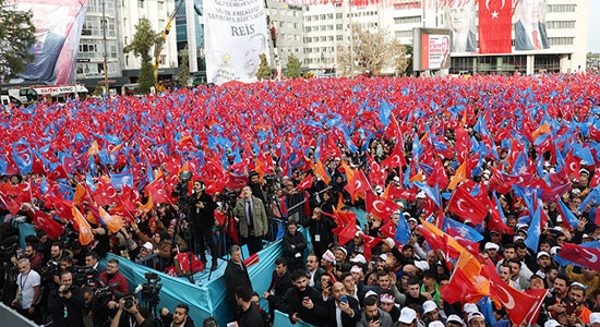 "Bunca yıldır ülkeyi yöneten bir kişinin elbette eksikleri de hatta hataları da olabilir. Eski Türkiye'nin en büyük sorunu, milletin yetki verdiklerinden ülkeye ve millete vermedikleri hizmetlerin hesabının sorulmamasıydı. Biz bu muhasebeyi kimseye bırakmadan, kendi kendimize yapıyoruz. Ülkemize kazandırdığımız eser ve hizmetleri vazifemizin gereği olarak görüyoruz. Bununla kalmıyor, söz verip de yapamadıklarımızın, yapmamız gerekip de henüz başaramadıklarımızın peşinden koşuyoruz.