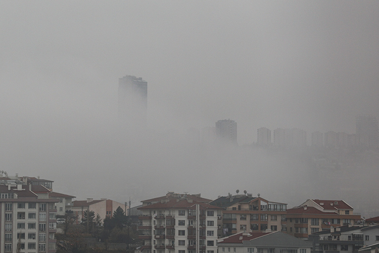 Ankara'da etkili olan yoğun sis nedeniyle görüş mesafesi yer yer 30 metrenin altına düştü.