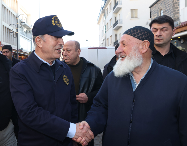Milli Savunma Bakanı Hulusi Akar, beraberinde Genelkurmay Başkanı Orgeneral Yaşar Güler, Kara Kuvvetleri Komutanı Orgeneral Musa Avsever, Deniz Kuvvetleri Komutanı Oramiral Ercüment Tatlıoğlu ve Hava Kuvvetleri Komutanı Orgeneral Atilla Gülan ile 8'inci Ana Jet Üs Komutanlığı'ndaki inceleme ve denetlemelerinin ardından kent merkezinde esnaf ziyareti yaptı.