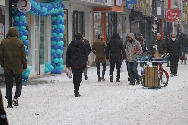 Erzurum'da sabah saatlerinde başlayan ve aralıklarla etkisini artıran kar yağışı, kenti beyaza bürüdü.