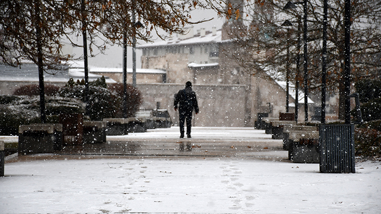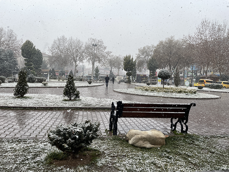 Kentte bir süredir etkili olan soğuk havanın ardından sabah saatlerinde kar yağdı. Tarihi Cumhuriyet Meydanı beyaz örtüyle kaplandı.