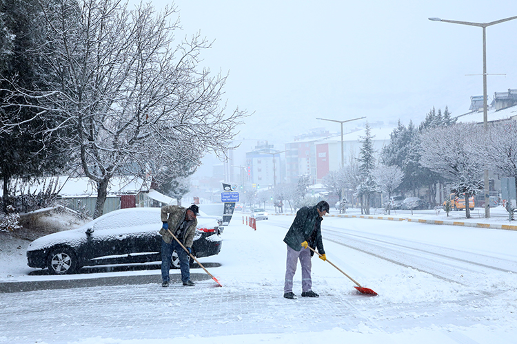 Sabah başlayan kar nedeniyle Ahlat ilçesi beyaza büründü. Güne karla uyananlar ev ve iş yerlerinin önü ile araçlarının üzerinde biriken karları temizledi.