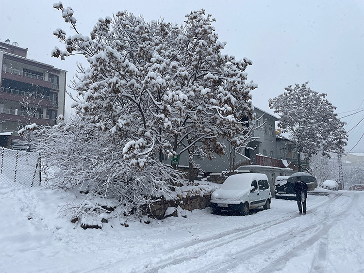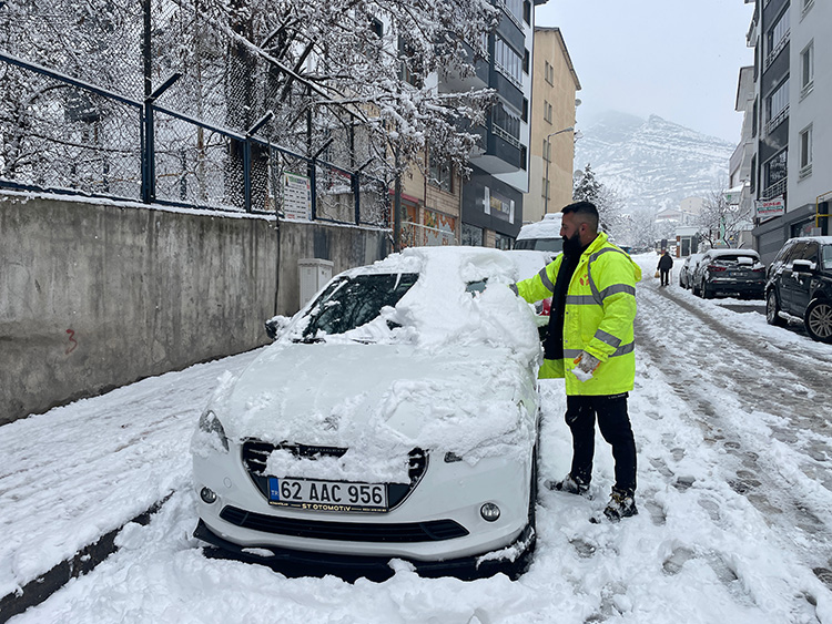 Güne karla uyanan vatandaşlar, park halindeki araçlarının üzerinde ve evlerinin önünde biriken karları temizledi. Köylerde besicilik yapan üreticiler de yoğun kar yağışına rağmen keçi, inek ve koyunları için zorlu mesai yapıyor.