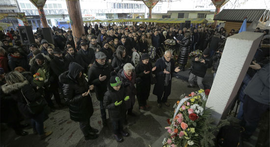 Sırp askerlerince 5 Şubat 1994'te düzenlenen saldırının 29. yılı dolayısıyla Markale pazar yerinde düzenlenen törene, siyasiler, hayatını kaybedenlerin yakınları ve saldırıdan kurtulanlar katıldı.