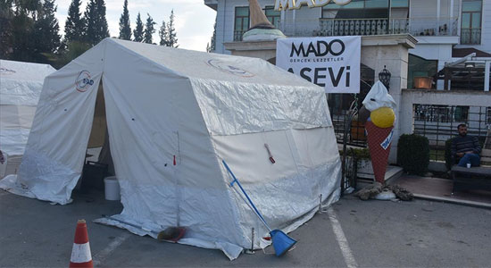 Kentin önde gelen firmalarından MADO da fabrikalarındaki açık alanlara çok sayıda çadır kurdu. Çadırlarda depremzede ailelerin barınmasına olanak sağlanırken şirket dahil sektör temsilcileri bu kez atıl arazilere konteyner kent kurmaya odaklandı.