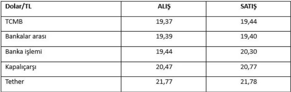 İşin içine bir diğer paralel kur sayılabilecek Tether’in de girmesiyle bir çok farklı dolar kuru oluştu.
