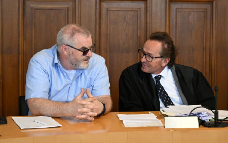 (Dietmar Scherer ve avukatı Joachim Ceasar-Preller, Rottweil’daki mahkemede böyle görüntülendi. Scherer’in de Kovid-19’un yan etkisi sebebiyle tazminat davası açtığı öğrenildi.)
