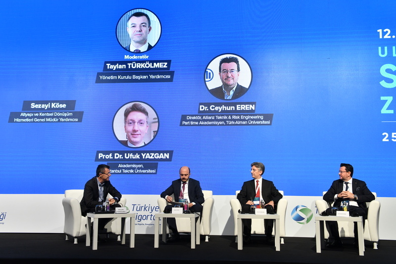TSB Başkan Yardımcısı Taylan Türkölmez’in moderatörlüğünü yaptığı “Depreme Dayanıklı Şehirler İnşa Etmede Sigortacıların Rolü” başlıklı panelin konukları; Çevre Şehircilik ve İklim Değişikliği Bakanlığı Altyapı ve Kentsel Dönüşüm Hizmetleri Genel Müdür Yardımcısı Sezayi Köse ile İTÜ’den Prof. Dr. Ufuk Yazgan ve Allianz Teknik ve Risk Mühendisliği Direktörü Dr. Ceyhun Eren idi.