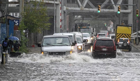 New York'ta etkili olan sağanak yağış yolları göle çevirdi, metroları su bastı.