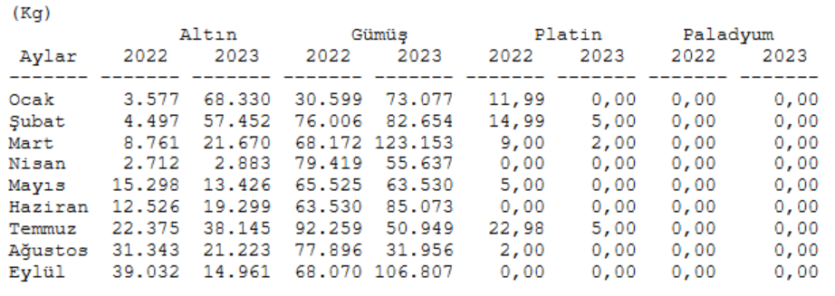 Yılın ilk 9 ayında toplam altın ithalatı 257 bin 393 kg, gümüş ithalatı 671 bin 331 kg seviyesine ulaştı.