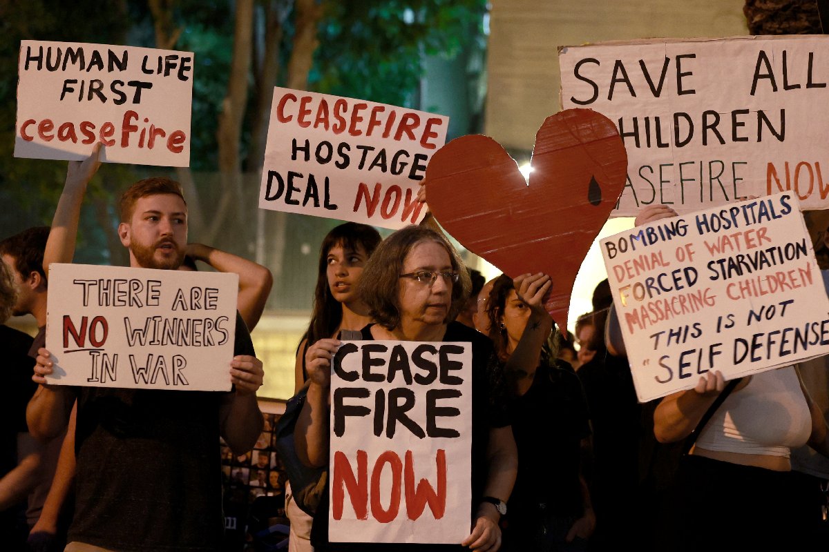 Netanyahu’nun resmi konutu yakınındaki gösteride, esir yakınları kurulan sahnede konuştu. Genelde Netanyahu hükümeti karşıtı grupların toplandığı meydanın çevresinde, hükümet taraftarları da bekledi. İsrail polisi çevrede güvenlik önlemi aldı.