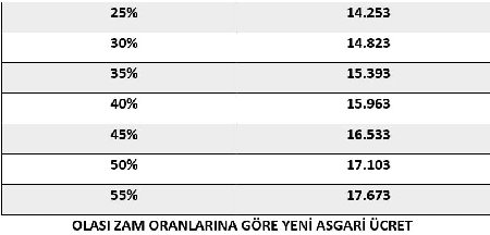 ZAM ORANLARINA GÖRE YENİ ASGARİ ÜCRETLER
