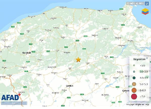 Afet ve Acil Durum Yönetimi Başkanlığı'ndan (AFAD) alınan bilgilere göre; saat 16.04'te merkez üssü Çankırı'nın Ilgaz ilçesi olan 4.5 büyüklüğünde deprem meydana geldi. 7 kilometre derinlikteki deprem, çevre il ve ilçelerden de hissedildi.