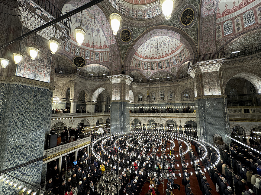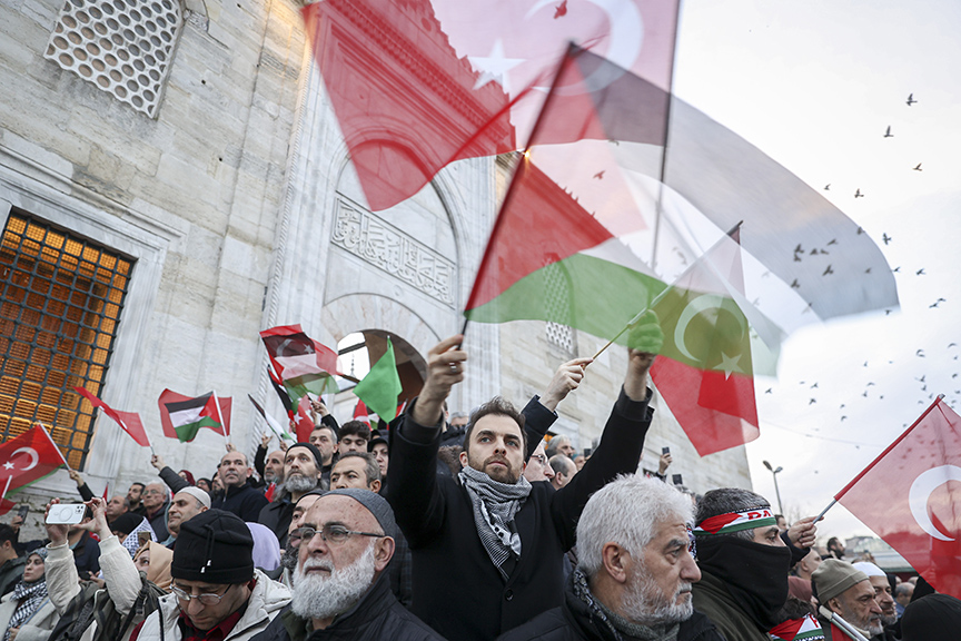 Yürüyüş kapsamında bazı katılımcılar da ellerindeki Türk ve Filistin bayraklarıyla Eminönü'nde bulunan Yeni Cami'ye geldi. Kalabalık nedeniyle bazı kişiler caminin dışında namaz için saf tuttu.