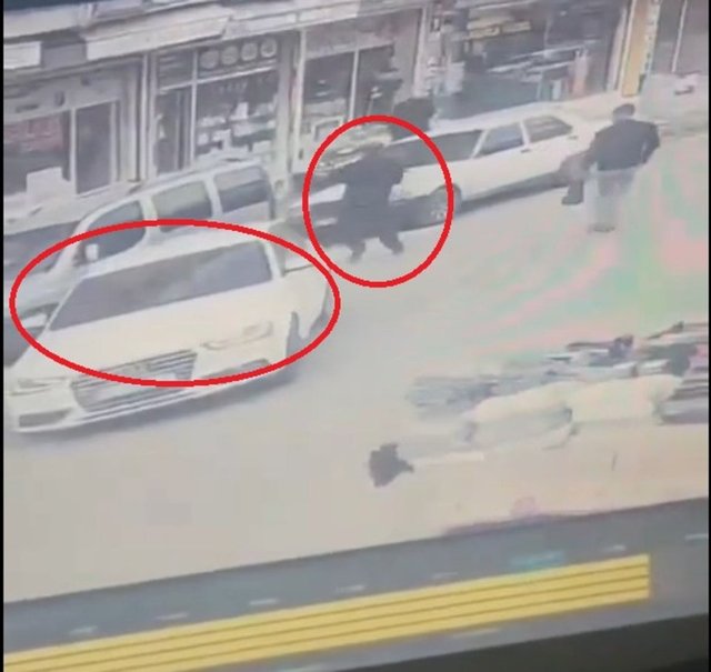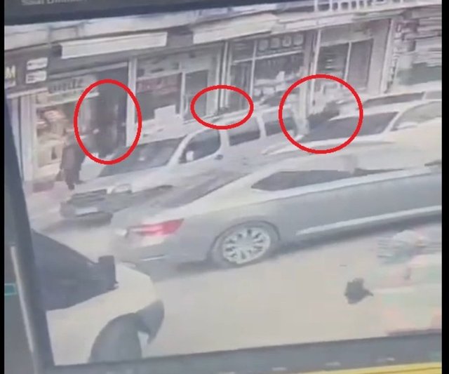 Şüpheliler bir süre sonra koşarak tekrar dışarı çıkıp otomobile binmeye çalışıyor. Arkalarından koşan iş yeri sahibi Sezai Aslan, şüphelilerden birini tutarak engellemeye çalışıyor.