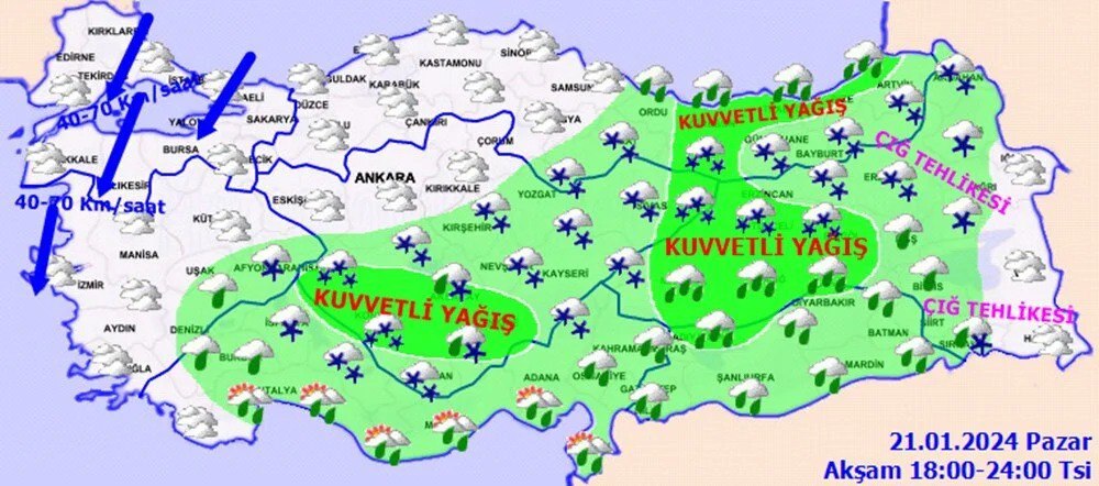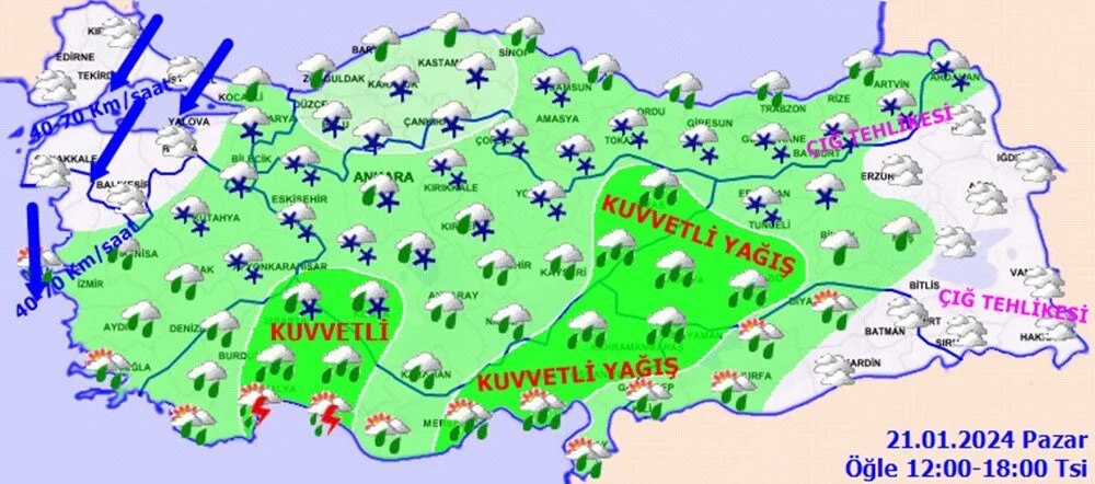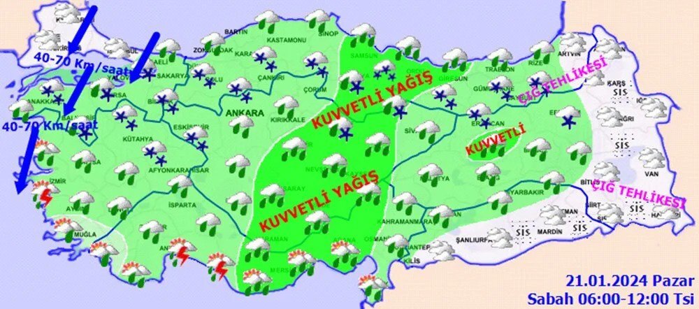 Hava durumu potansiyel tehlikelidir: Tahmin edilen meteorolojik hadise olağandışı olmamakla birlikte, meteorolojik şartlardan etkilenebilecek faaliyetler konusunda dikkatli olunmalıdır.