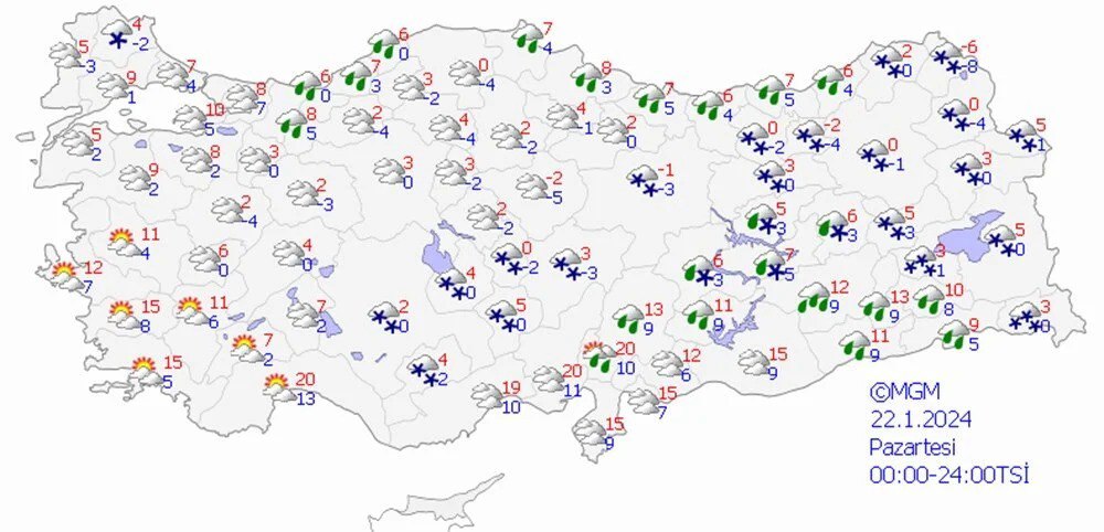İstanbul bulutlu, yağış çok hafif, hissedilen sıcaklık 1 derece. Ankara sıcaklık 5 dereceye iniyor, yağış hafif. İzmir'de fırtına nedeniyle sıcaklık 5 derece hissedilecek. Bursa hafif yağmurlu 7, Antalya aralıklı yağmurlu 17 derece olması bekleniyor.