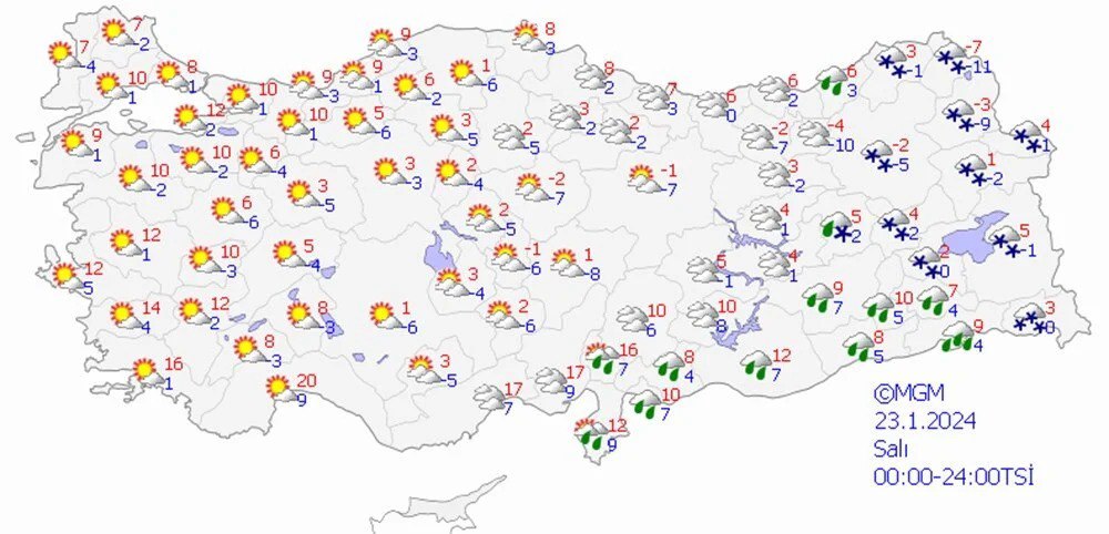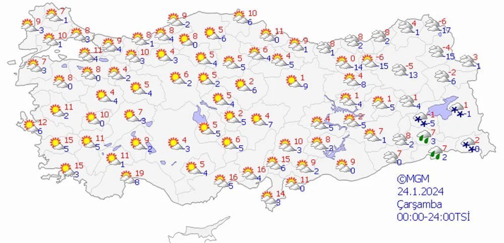 Meteoroloji Genel Müdürlüğü Adıyaman, Bingöl, Diyarbakır, Elazığ, Erzincan, Konya, Malatya, K.Maraş, Sivas, Tunceli, Aksaray, Batman ve Osmaniye için sarı kodlu uyarıda bulundu.