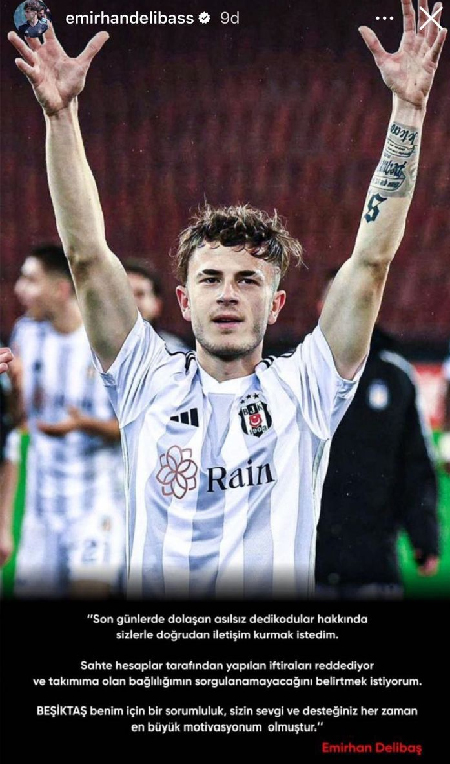 Emirhan Delibaş daha sonra bu iddialar üzerine, "Sahte hesaplar tarafından yapılan iftiraları reddediyor ve takımıma olan bağlılığımın sorgulanamayacağını belirtmek istiyorum. Beşiktaş benim için bir sorumluluk, sizin sevgi ve desteğiniz her zaman en büyük motivasyonum olmuştur." açıklamasını yapmıştı.