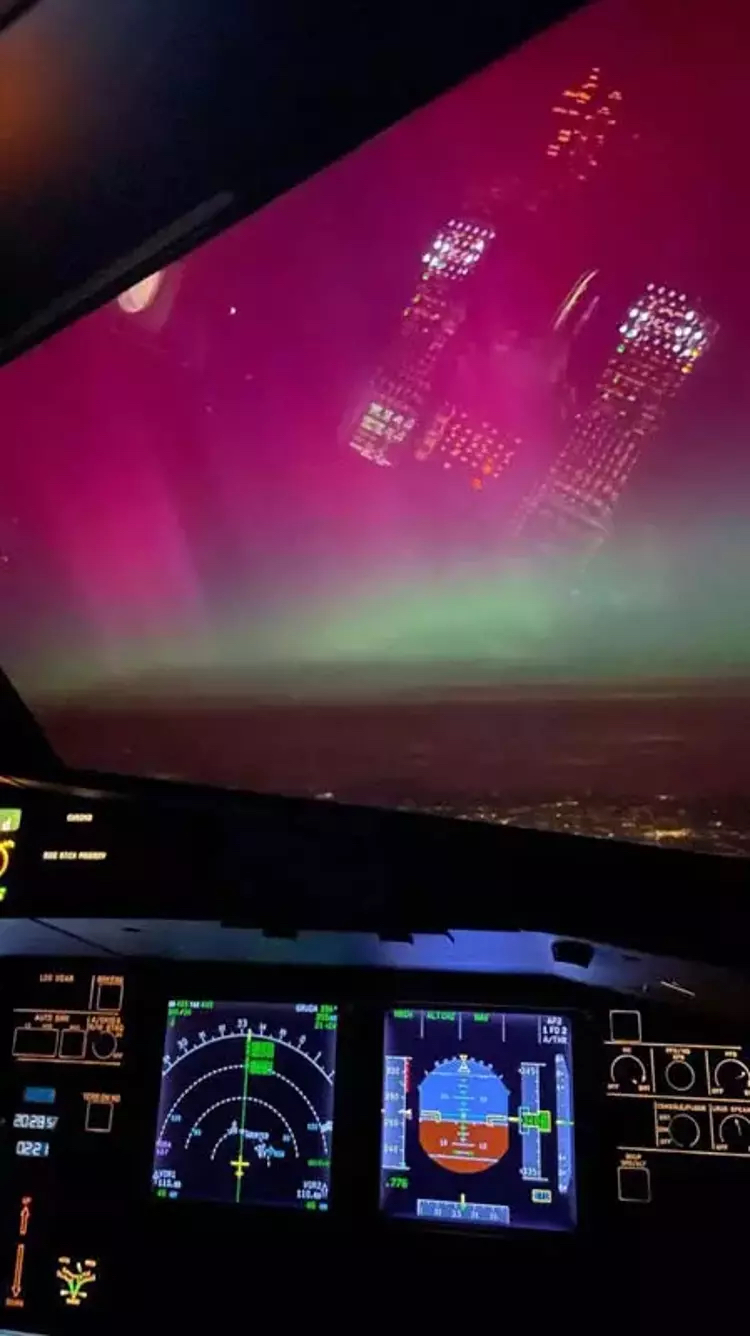 Kuzey Işıklarını uçuş sırasında gören pilotlar bu muhteşem anı fotoğraf kareleriyle ölümsüzleştirdi.