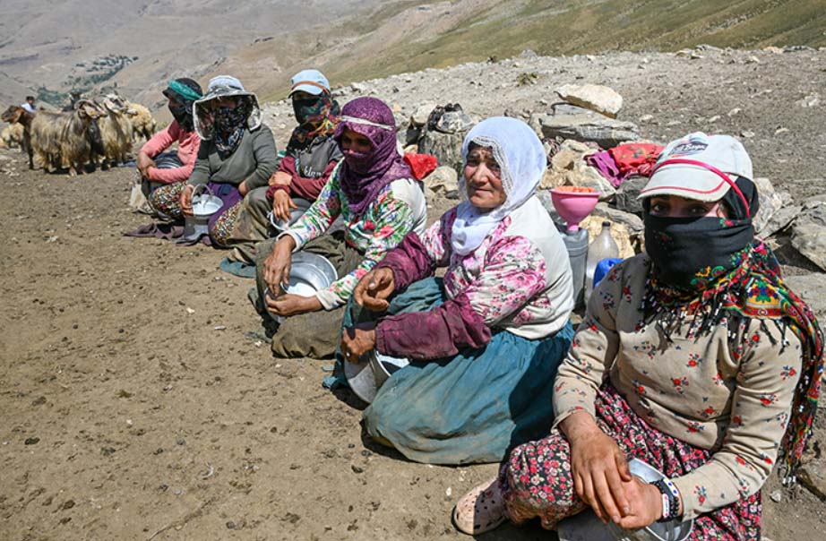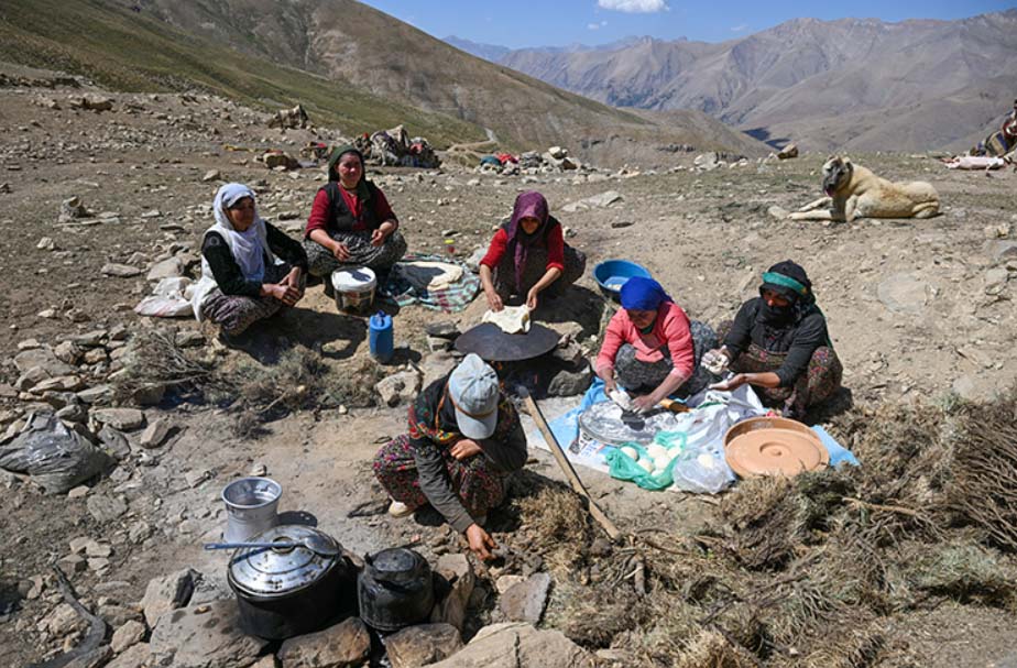 Yaklaşık 3 saat süren zahmetli yolculuğun ardından küçükbaş hayvan sürülerinin otlatıldığı 10 kilometre uzaklıktaki 2 bin 800 rakımlı Küpe Yaylası'na ulaşan kadınlar, hem çobanlar için ekmek pişirip yemek yapıyor hem de hayvanları sağıyor.