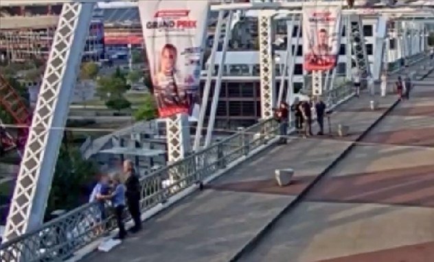 Kayıtlarda Jovi ve yanındaki kadının, Tennessee'nin Nashville kentindeki yayaların kullanımına açık John Seigenthaler Köprüsü'nün korkuluklarında duran kadına doğru yaklaştıkları ve onunla kısa süre konuştukları görülüyor.