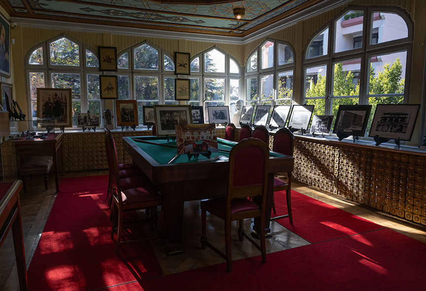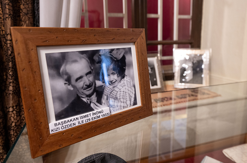"Sergilerimizin en önemli bölümü tabii Kurtuluş Savaşı'na ve Cumhuriyet dönemine ait. Atatürk'ün yaşadığı yerleri gösteriyoruz. Onlarla ilgili belgelerimiz, mektuplar ve çeşitli eşyalar var. Özellikle anneannem Mevhibe İnönü'nün giydiği kıyafetler var. Yine İsmet Paşa'nın üniformalarından, daha sonra Cumhurbaşkanlığı döneminde giydiği kıyafetlere kadar pek çok eşya burada. İnönü çok renkli bir insan. Bundan önce İnönü'nün kitaplarını sergilemiştik. 8 bine yakın kitabı var. Onlardan 4 bine yakını burada sergilendi. Onun dışında satranca meraklı. Burada satranç taşlarını görüyoruz."