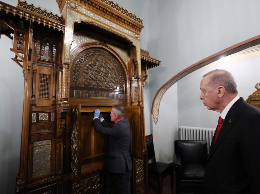 Erdoğan, Atatürk'ün kullandığı eşyaları inceledi, Atatürk'e hediye edilen eşyalar ile yazı takımı ve radyosu hakkında bilgi aldı.