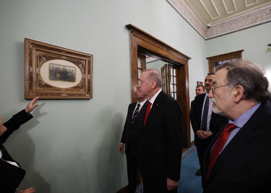 Cumhurbaşkanı Erdoğan, Atatürk Müze Köşkü'nde, tarihçi ve yazar Murat Bardakçı ve öteki ilgililer tarafından karşılandı. Erdoğan ve beraberindekiler, açılışın ardından köşkü gezip, yetkililerden bilgi aldı.