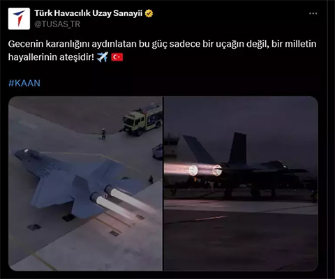 Türk Havacılık ve Uzay Sanayii A.Ş. (TUSAŞ), milli muharip uçak KAAN’ın yeni görüntülerini paylaşarak projedeki gelişmeleri bir kez daha gözler önüne serdi. Paylaşımda, KAAN’ın 'Afterburner' sistemi dikkat çekerken, “Bir milletin hayallerinin ateşi” ifadesiyle projenin Türkiye için taşıdığı öneme vurgu yapıldı.