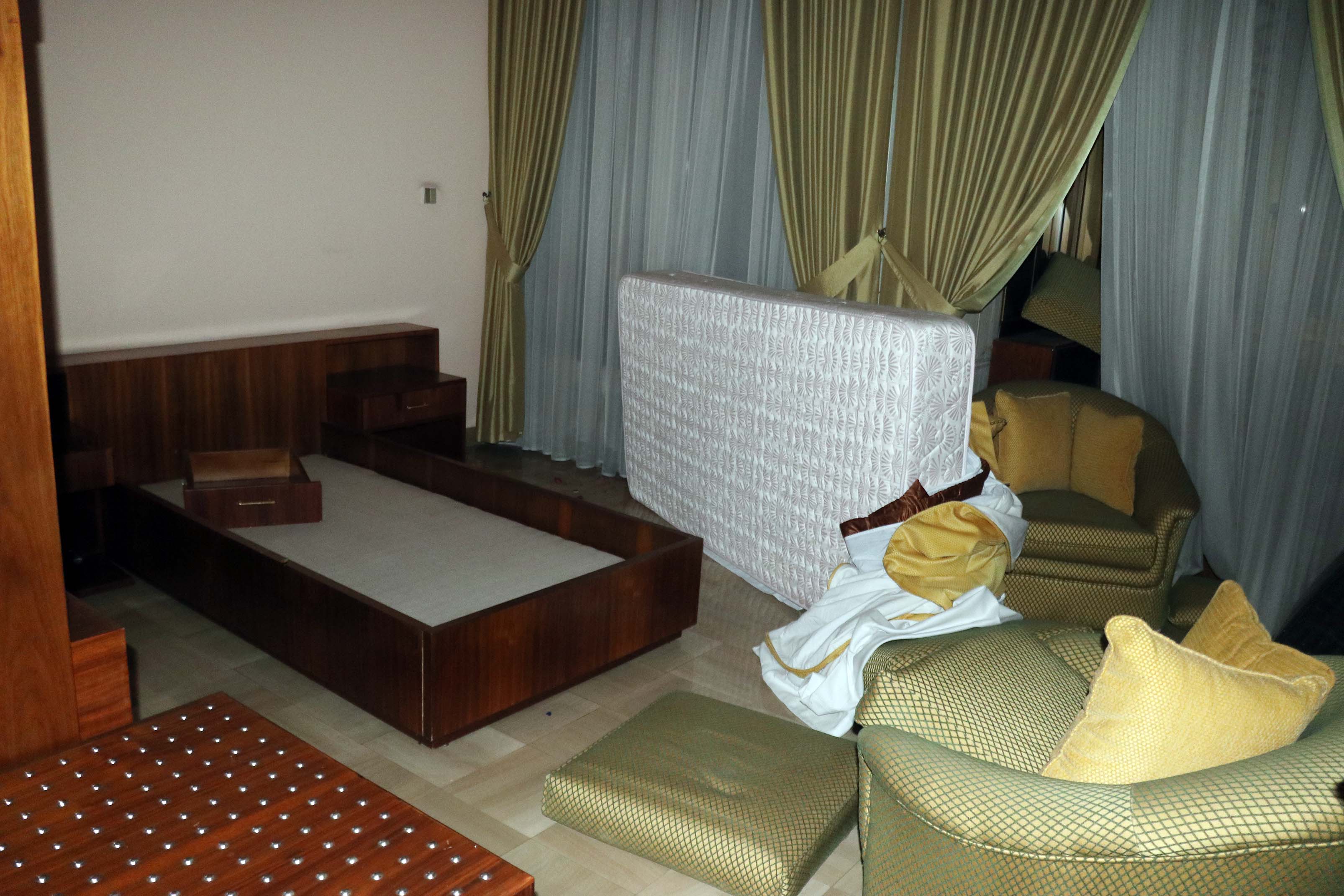 Şam’a hakim bir noktada bulunan ve onlarca odadan oluşan saraya gelenler içeride bulunan eşyaları aldı, sarayın bazı bölümleri ise ateşe verdi. Sarayın ateşe verilen bölümlerinde küle dönmüş eşyaların yanı sıra, odalarda parçalanmış eşyalar, içi boşaltılarak kırılan ve tahrip edilen malzemeler dikkat çekti.