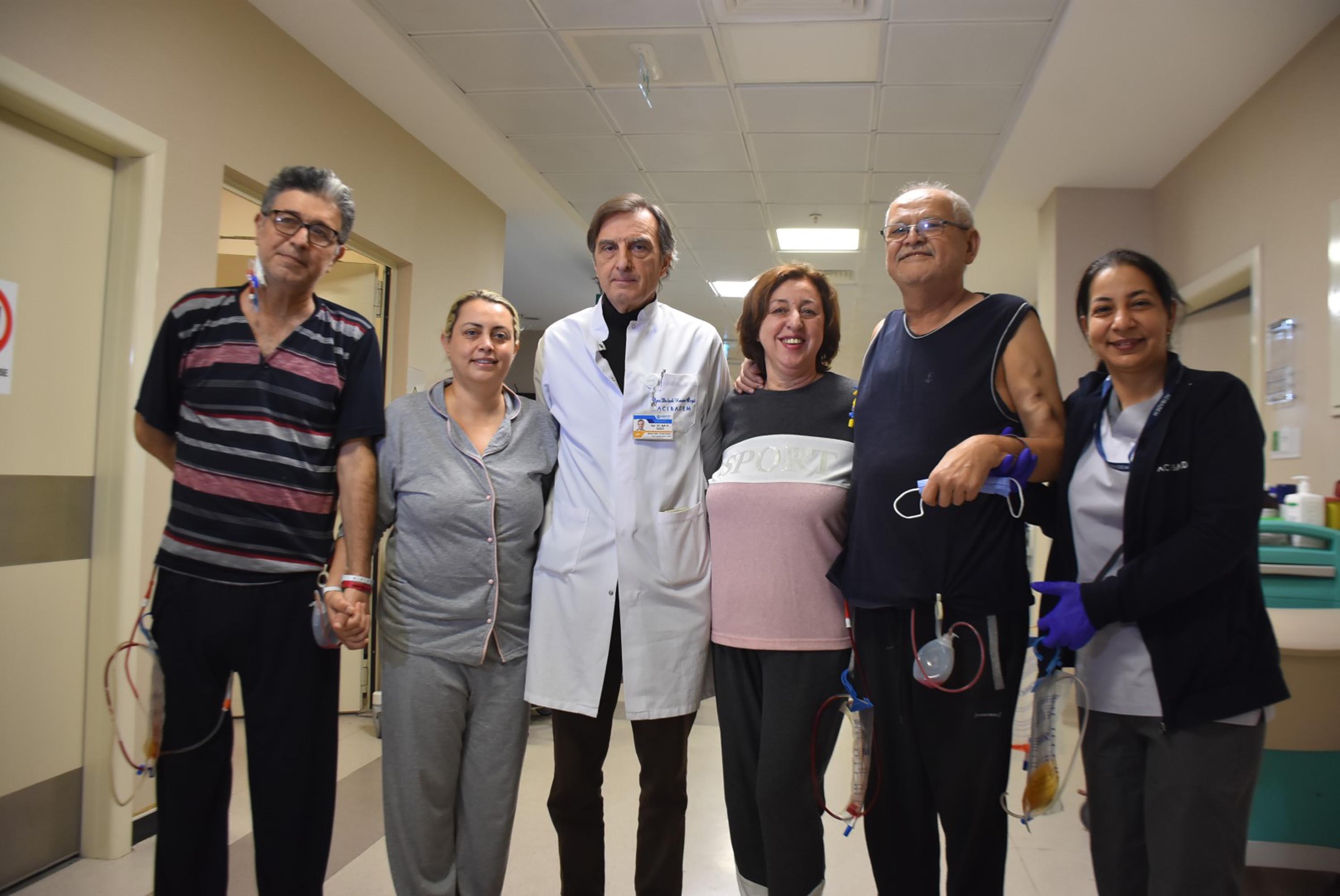Çapraz nakiller Uzm. Dr. Işık Özgü başkanlığında Uzm. Dr. Uğur Saraçoğlu, Prof. Dr. Hüseyin Töz, Doç. Dr. Ebru Sevinç Ok, Doç. Dr. Mert Akan, Uzm. Dr. Alihan Pirim, Uzm. Dr. Özgür Bolat, Uzm. Dr. Gökhan Ekin'den oluşan Acıbadem Kent Hastanesi böbrek nakli ekibi tarafından gerçekleştirildi. Ameliyatın ardından hiçbir olumsuzluğun yaşanmadığını ifade eden Üroloji ve Böbrek Nakli Uzmanı Op. Dr. Işık Özgü ise hastaların kısa sürede taburcu olup yeni hayatlarına başlayacaklarını söyledi. Çapraz nakile ilişkin bilgi veren Dr. Özgü, "Her iki vericiyi de bugün taburcu edeceğiz. Ameliyattan sonraki 6 ya da 7'nci günde alıcıları da taburcu edeceğiz. Böbrek nakli bekleyen çok hasta var. Bu sayı her geçen gün artıyor. Ama böbrek kaynağı az. Organ bağışı istenen düzeyde değil. Dolayısıyla canlıdan vericilere başvurmak zorunda kalıyoruz. Böbrek alıp verecek kişilerin bazen kan grupları uymuyor. Benzer durumdaki çiftlerle çapraz nakil yapıyoruz. Hastalar başvurduğu zaman özelliklerine bakılıyor. Çapraz nakilleri yaparken mümkün olduğunca özellikleri benzer hastaları seçmeye çalışıyoruz ki haksızlıklar olmasın. Örneğin verici yaşları ve cinsiyetlerine dikkat ediyoruz. Uygun çiftler belirleniyor. Nakilden sonra vericileri de alıcıları da dönem dönem kontrole çağırıyoruz. Gerekli eğitimler veriliyor. Kendilerini enfeksiyondan koruyacak, fazla ziyaretçi almayacaklar. İlaçlarını düzgün kullanacaklar. Sağlıklarıyla ilgili olumsuz gelişme olursa bizi haberdar etmeleri gerekiyor" dedi.