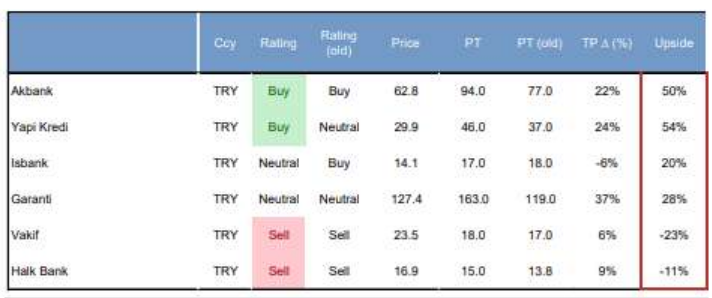 ABD’li bankacılık grubu yayınladığı raporda, Türk bankaları için tahminlerini son makro gelişmeleri yansıtacak şekilde güncelediğini bildirdi.