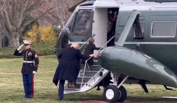 (Beyaz Saray muhabiri Kellie Meyer, Trump'ın ağzına mikrofon çarptığı ve helikoptere binerken tökezlediği görüntüleri X hesabında paylaştı)