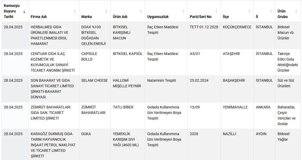 Tespit edilen ürünlerde standart dışı katkı maddeleri ve tüketici sağlığını riske atabilecek uygulamalar belirlendi. Bakanlık, vatandaşları gıda alırken dikkatli olmaya çağırdı ve güncellenen tağşiş listesine resmi kanallar üzerinden ulaşabileceklerini hatırlattı.