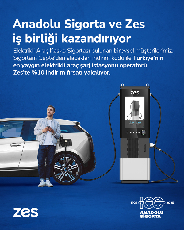 Sürdürülebilir kalkınmaya katma değer yaratma bakış açısıyla 100 yıldır faaliyetlerini sürdüren Anadolu Sigorta, Türkiye’nin en yaygın elektrikli şarj istasyonu operatörü Zes ile önemli bir iş birliğine imza attı. Bu kapsamda, Anadolu Sigorta’nın Elektrikli Araç Kasko Sigorta poliçesine sahip bireysel müşterileri, Zes şarj istasyonlarında özel indirim fırsatlarından yararlanabilecek.