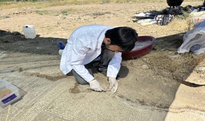 Bu kapsamda yapılan kurtarma kazısında Geç Roma-Erken Bizans dönemine ait olduğu değerlendirilen 35 metrekarelik mozaik gün ışığına çıkarıldı.